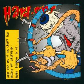 The Hard-Ons are were history, coz they split in '94. They are a threesome, Blackie (g, voc), Ray (bass) and Keish (drums, voc) from Sydney, Australia. Starting in the 80ies, they rocked the boat. To describe their music style would need too much space, but the Ramones are a good comparison as I think. As they are from down under you can see them in the tradition of good Aussie punk bands starting with the Saints and Birthday Party to name a few. They started with cover versions that were speeded up dramatically, but soon they composed their own songs. Developping more and more towards sugar-sweet speed punk pop core with "Yummy" as their masterpiece. On the two following albums, they mixed some metalesque elements into their music and reduced the influence of their drinking and farting stories, but still recorded some typical Hard-Ons-style songs.